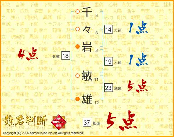千々岩敏雄さんの総運は37画の5点!