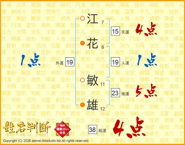 江花敏雄さんの総運は38画の4点!