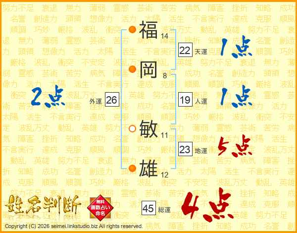 福岡敏雄さんの総運は45画の4点!