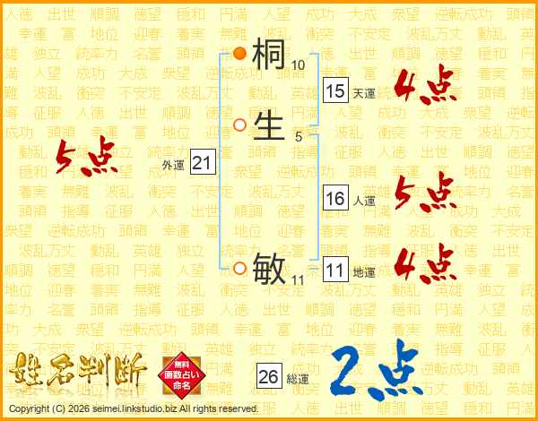 桐生敏さんの総運は26画の2点!