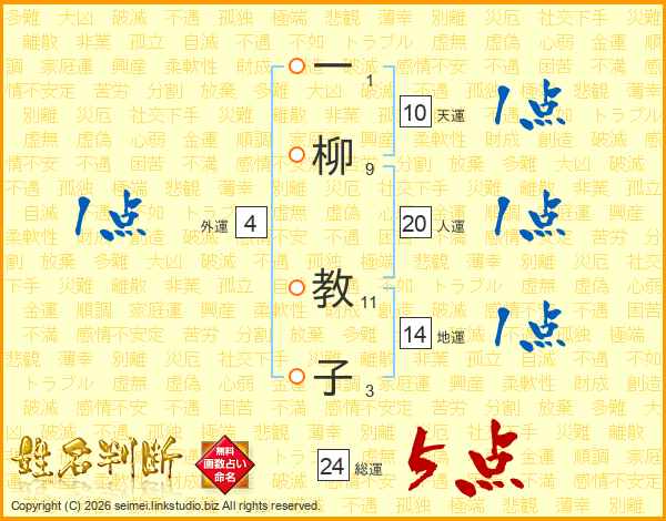 一柳教子さんの総運は24画の5点!