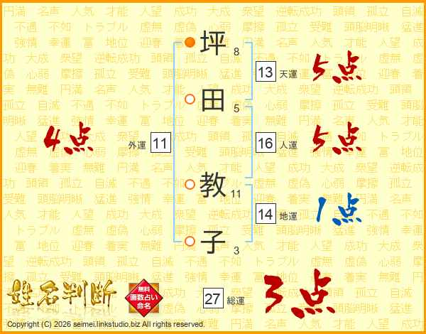 坪(8画)田(5画) 教(11画)子(3画)