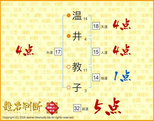 温井教子さんの総運は32画の5点!
