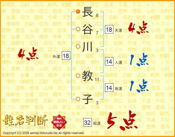 長(8画)谷(7画)川(3画) 教(11画)子(3画)