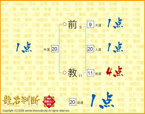 前教さんの人運は20画の1点!