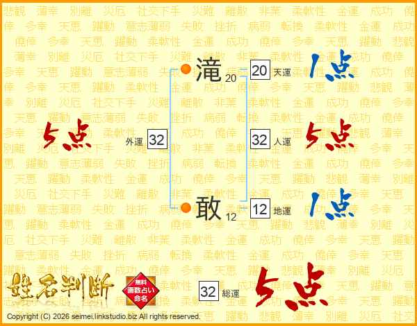滝敢さんの総運は32画の5点!