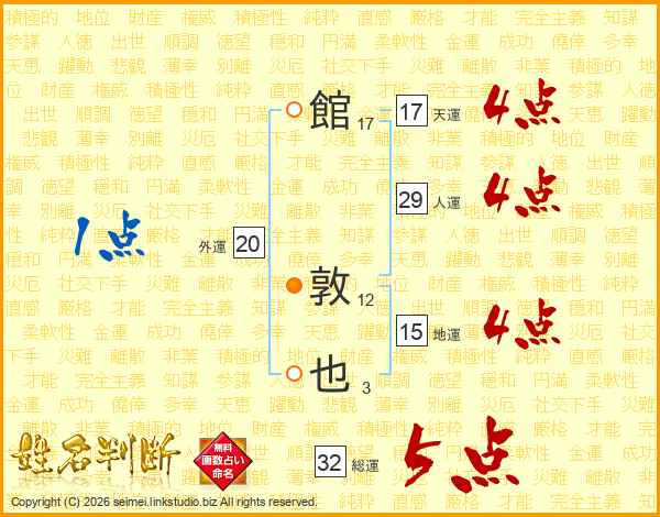 館敦也さんの総運は32画の5点!