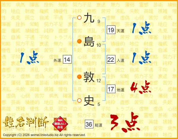 九島敦史さんの総運は36画の3点!