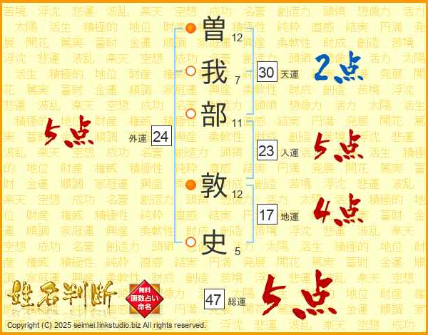 曽我部敦史さんの人運は23画の5点!