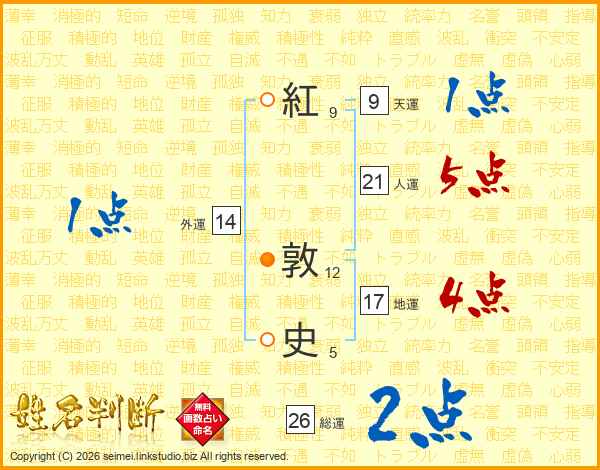 紅敦史さんの総運は26画の2点!