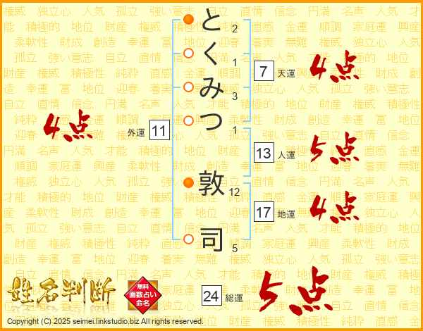 とくみつ敦司さんの天運は7画の4点!