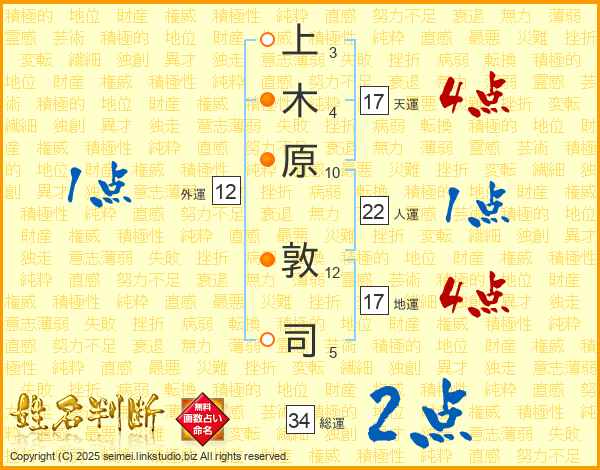 上(3画)木(4画)原(10画) 敦(12画)司(5画)