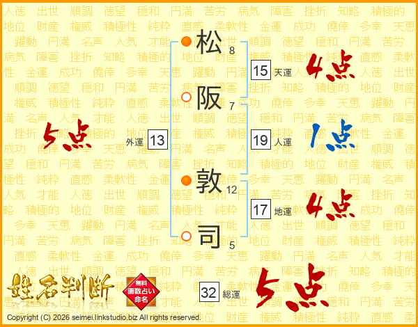 松阪敦司さんの総運は32画の5点!