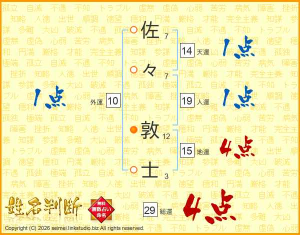 佐々敦士さんの総運は29画の4点!