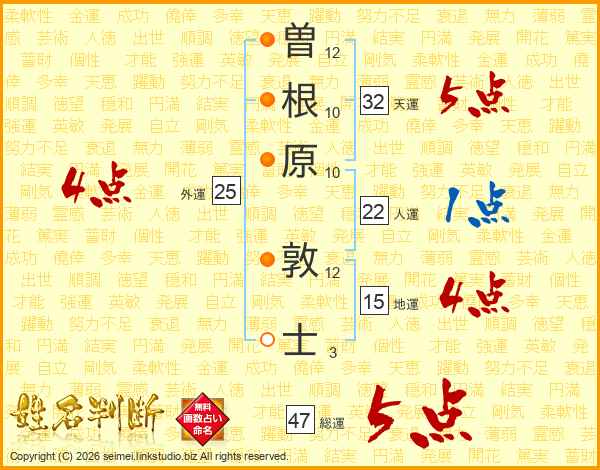 曽根原敦士さんの天運は32画の5点!