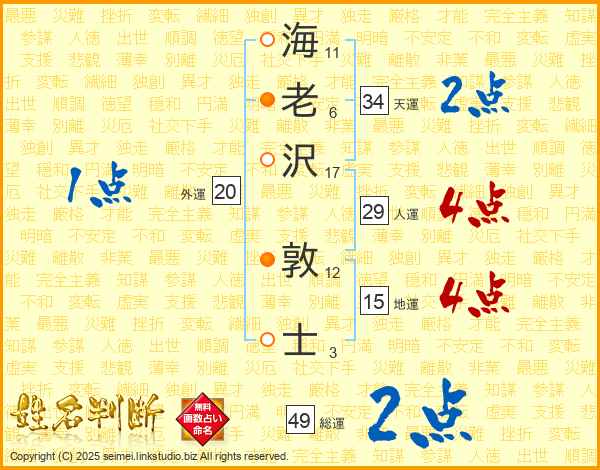 海(11画)老(6画)沢(17画) 敦(12画)士(3画)