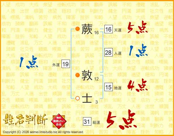 蕨敦士さんの総運は31画の5点!