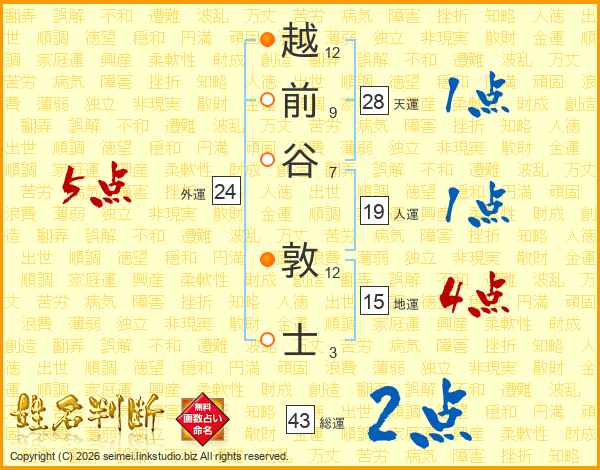 越前谷敦士さんの外運は24画の5点!