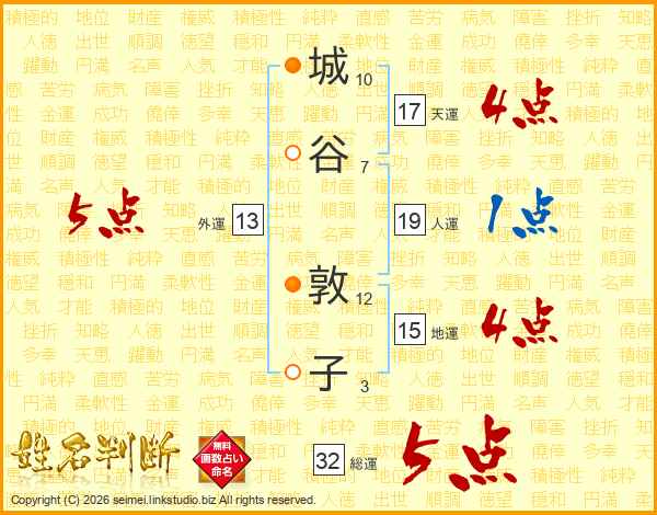 城谷敦子さんの総運は32画の5点!