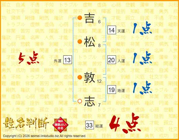 吉松敦志さんの総運は33画の4点!