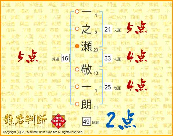 一之瀬敬一朗さんの人運は33画の4点!