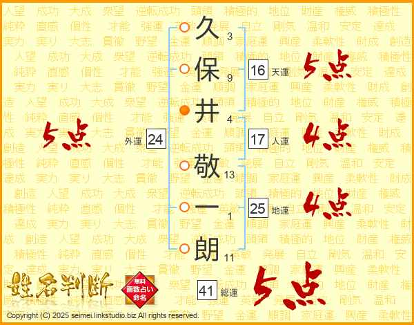 久保井敬一朗さんの地運は25画の4点!