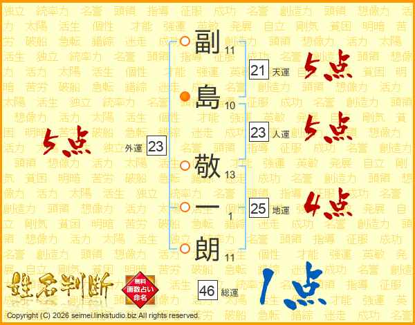 副(11画)島(10画) 敬(13画)一(1画)朗(11画)