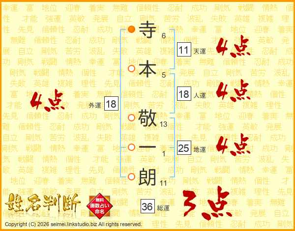 寺本敬一朗さんの天運は11画の4点!