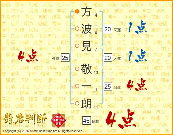 方波見敬一朗さんの総運は45画の4点!