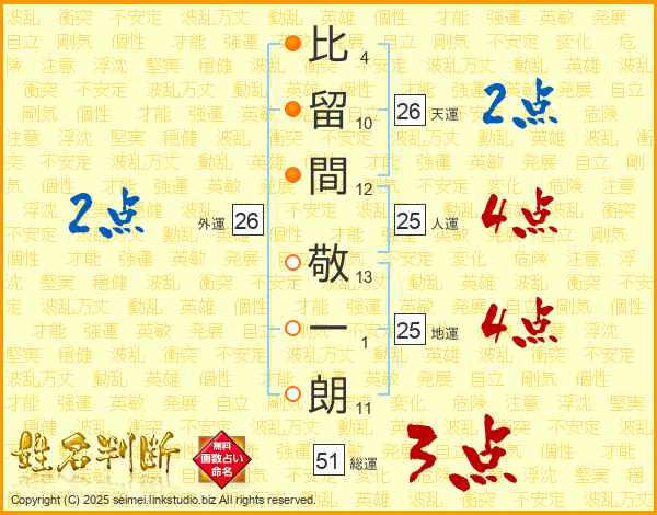 比留間敬一朗さんの人運は25画の4点!