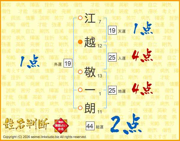 江越敬一朗さんの総運は44画の2点!