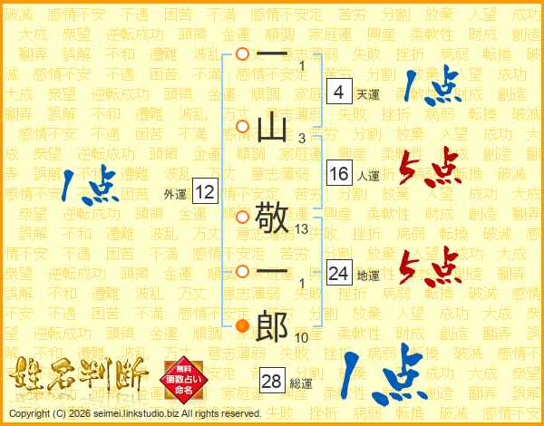 一山敬一郎さんの総運は28画の1点!