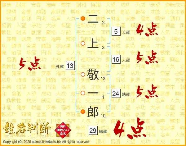 二上敬一郎さんの総運は29画の4点!
