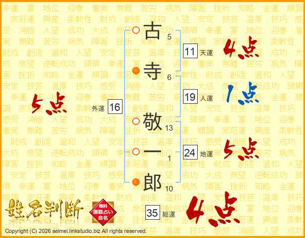 古寺敬一郎さんの総運は35画の4点!