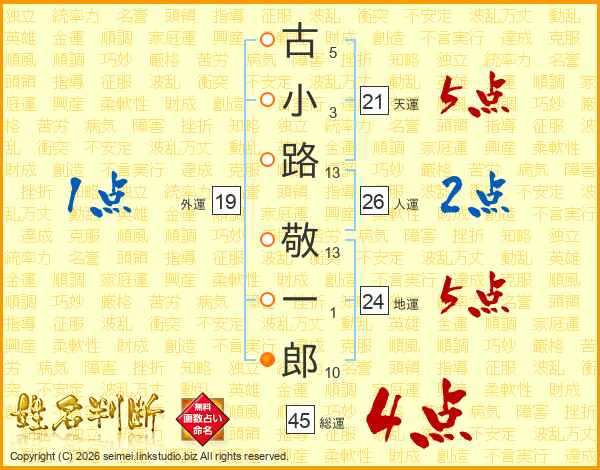 古(5画)小(3画)路(13画) 敬(13画)一(1画)郎(10画)