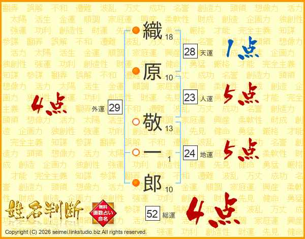 織(18画)原(10画) 敬(13画)一(1画)郎(10画)