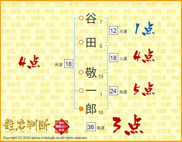 谷田敬一郎さんの総運は36画の3点!