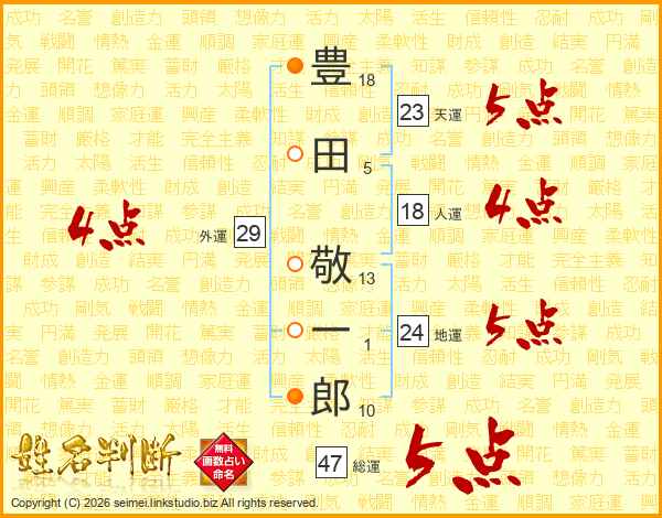 豊田敬一郎さんの総運は47画の5点!