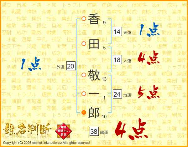 香田敬一郎さんの総運は38画の4点!