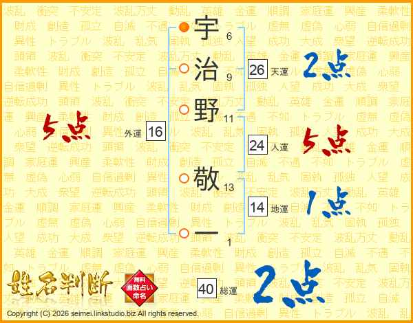 宇治野敬一さんの総運は40画の2点!