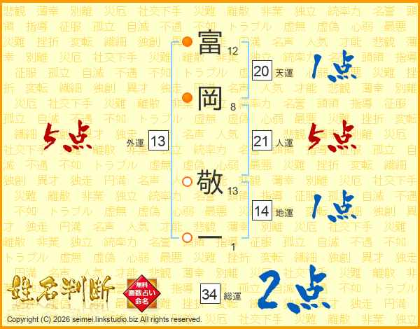 富(12画)岡(8画) 敬(13画)一(1画)