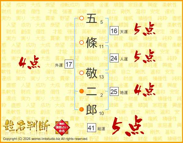 五條敬二郎さんの総運は41画の5点!
