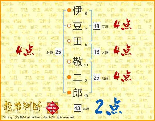 伊豆田敬二郎さんの総運は43画の2点!