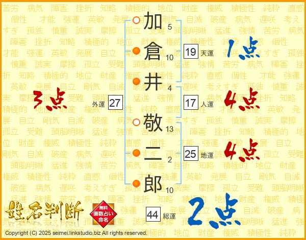 加(5画)倉(10画)井(4画) 敬(13画)二(2画)郎(10画)