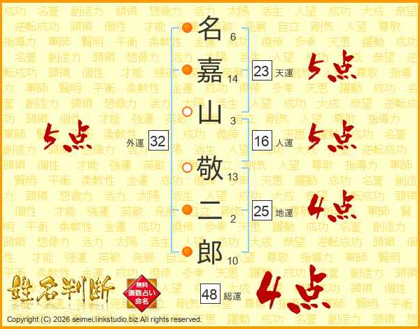 名嘉山敬二郎さんの外運は32画の5点!