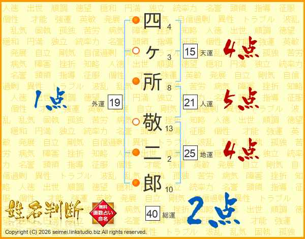 四ヶ所敬二郎さんの総運は40画の2点!