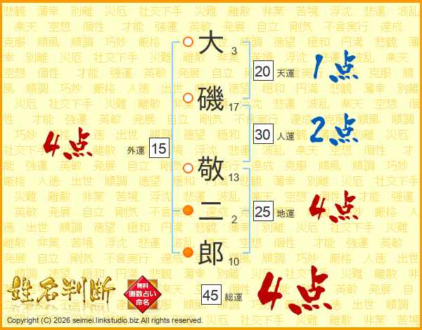 大磯敬二郎さんの総運は45画の4点!