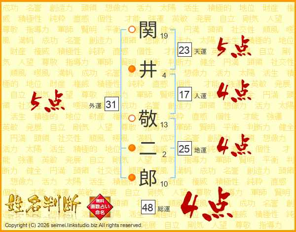 関井敬二郎さんの総運は48画の4点!