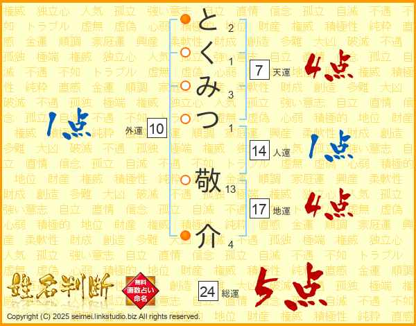 とくみつ敬介さんの天運は7画の4点!