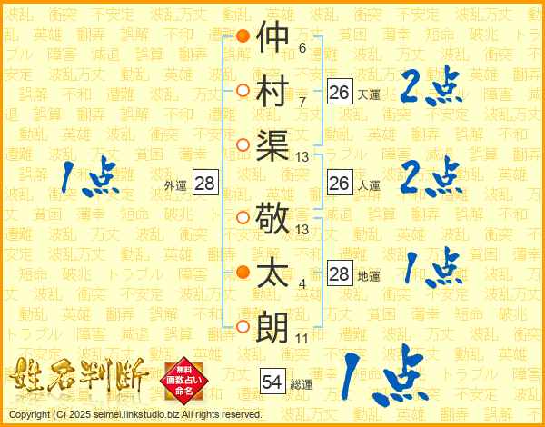 仲村渠敬太朗さんの天運は26画の2点!